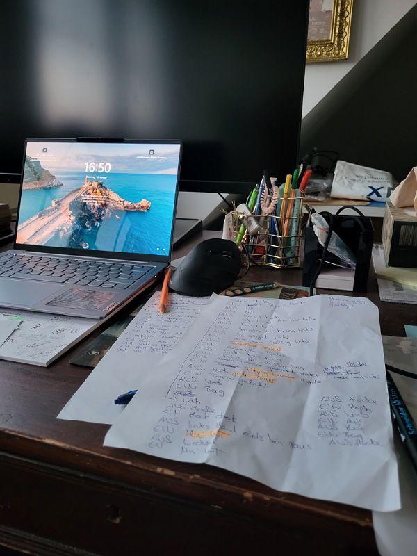 Nach dem Essen noch kurz den Inside Flow für nächste Woche vorbereiten, während die Kinder sich umziehen und zusammen in ihren Zimmern spielen. Jede ruhige Minute muss ich ausnutzen, um etwas zu arbeiten und die Kurse vorzubereiten.