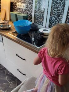 Während ich zwei Wochen lang beruflich unterwegs war, hatten mein Mann und die Kinder ein ganz eigenes kleines Abenteuer zu Hause. Papa war allein verantwortlich – und hat das mit Bravour gemeistert! Es standen einige Highlights an: der Tag der offenen Tür in der Schule, Pizza backen, Fahrrad fahren lernen und gemeinsam Schularbeiten in Erdkunde. Eine intensive Zeit für beide Seiten, mit vielen kleinen Erfolgen und neuen Erfahrungen. Und auch wenn mein Mann das alles super gemeistert hat, glaube ich, dass er immer ein wenig erleichtert ist, wenn ich wieder da bin. Denn ganz ehrlich: So ein Familienalltag allein kann ganz schön anstrengend sein.